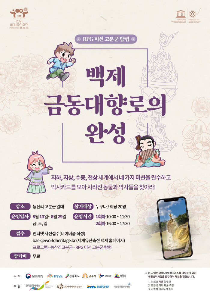 해당 프로그램은 6세 이상 누구나 무료로 참여할 수 있으며, 세계유산축전 백제 홈페이지에서 사전예약 신청이 가능하다.