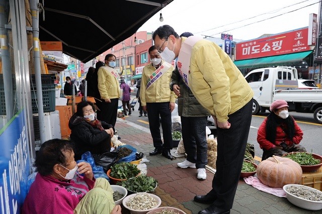 명현관 해남군수는 “전통시장 등 이용 시 마스크 수칙 등 방역 수칙을 지키고, 설명절 고향방문 자제 등 잠시 멈춤을 통해 안전한 설을 맞을 수 있도록 하자”며 “코로나로 힘든 전통시장 상인을 응원하고 전통시장에 생기와 활력을 불어넣고자 전통시장 활성화에도 적극 노력하겠다.”고 말했다.