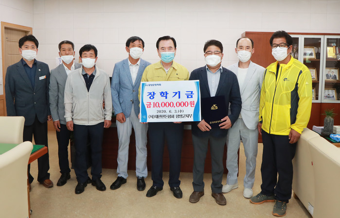 함양군은 3일 오전 10시 (사)대한한돈협회 함양군지부 김기환 지부장 등 임원들이 군청을 방문해 (사)함양군장학회에 장학금 1,000만원을 기탁했다고 밝혔다.