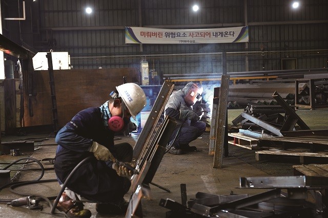 | ▲ ‘2020년 전라남도 중소기업 대상’ 은상을 수상한 영암군 대불산단 내 ㈜미주산업 근로자들 작업 모습 / 영암군 제공 |