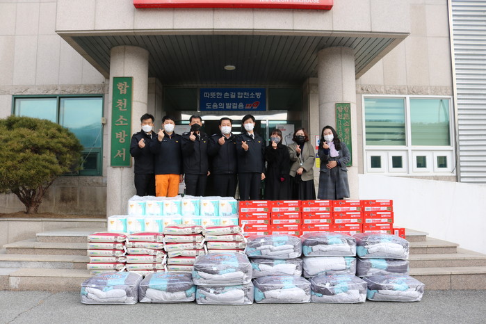 경남 합천소방서(서장 이중기)는 21일 소방서에서 연말연시를 앞두고 생활에 어려움을 겪고 있는 이웃을 돕기 위해 260만원 상당의 후원물품 전달식을 가졌다.