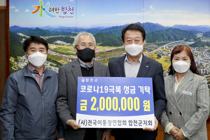 (사)전국이통장연합회 합천군지회(회장 김도섭)는 지난 22일 합천군청을 방문해 코로나 19의 위기 속에서 어려움을 겪고 있는 군민들을 위해 써 달라며 200만원을 기탁했다고 밝혔다.