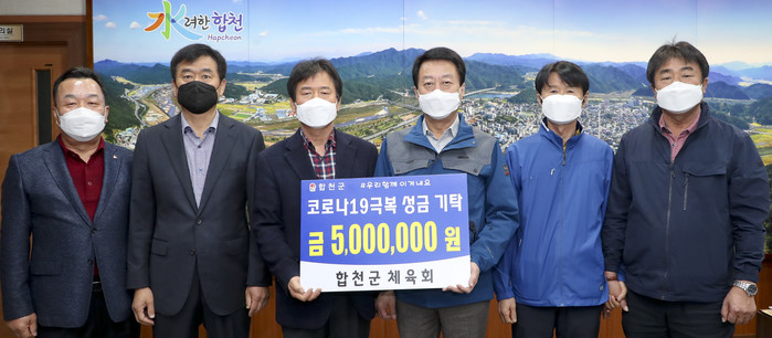 합천군체육회는 김해은 체육회장을 비롯한 김성환 부회장, 강병문 협회장, 윤부한 감사, 정성철 이사 등 군체육회 임원들은 지난 7일 군청을 방문해 코로나19로 힘든 군민들을 위해 써달라며 성금 500만원을 기탁했다.