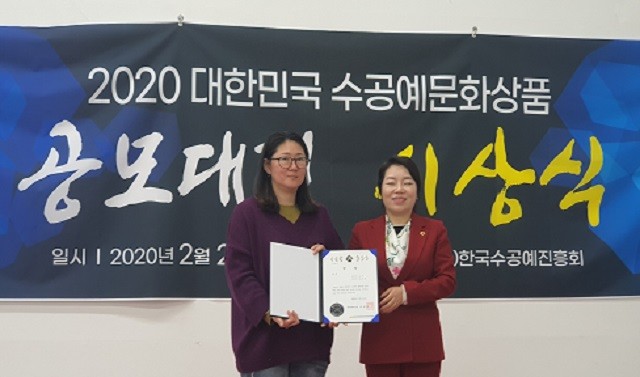 우수 수공예 및 창의 수공예 문화상품 발굴과 공예인 창작의욕 고취로 공예문화산업 발전을 도모하고자 추진된 이 공모전에는 도(초)자, 목(칠), 금속(보석), 섬유(피혁), 종이, 기타 등 수공예 전 분야에 걸쳐 작품들을 접수해 전문가 심사를 거쳐 이달 14일 한국수공예진흥회 홈페이지를 통해 75개 작품을 선정, 지난 21일 광주비엔날레전시관에서 수상자를 발표했다