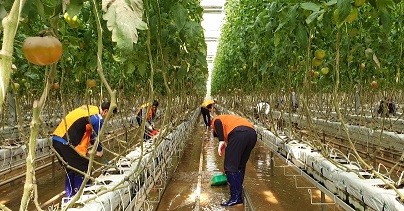 | 광산마을 토마토 하우스를 찾아 농가 피해복구를 지원하고 있다. |