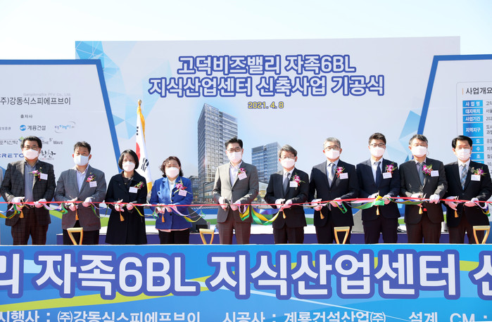 구는 8일 고덕비즈밸리(고덕동 343-2 일원) 자족기능시설용지 6BL, 지식산업센터 신축사업 기공식을 개최했다.