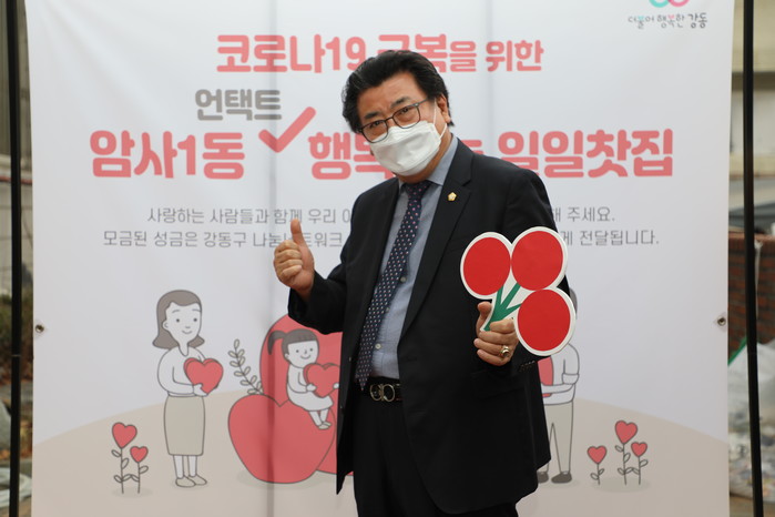 [시민일보 = 이대우 기자] 서울 강동구의회(의장 황주영) 방민수 의회운영위원장(암사 1·2·3동)이 최근 암사1동 자치회관에서 열린 ‘암사1동 언택트 행복나눔 일일찻집’에 참석했다.