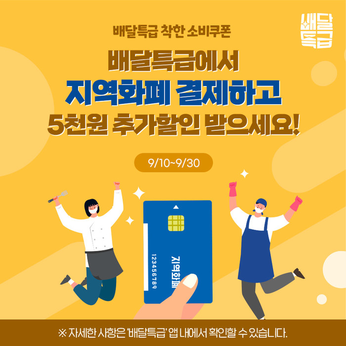 또한 지역화폐 결제 이력이 있는 회원을 대상으로 7,200명에게 5,000원 쿠폰을 지급하는‘지역화폐 사용하자’이벤트도 진행한다.