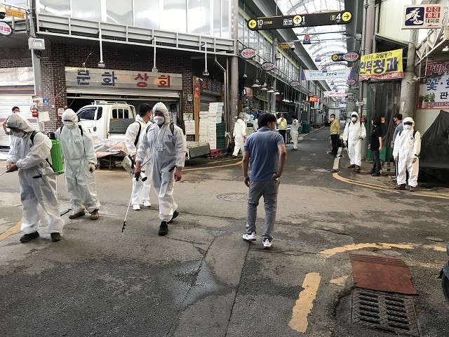 이들은 사전에 말바우시장을 방문해 방역이 필요한 구역을 확정하고 방진복 및 마스크, 살균소독제와 같은 약품 등을 준비해 이날 말바우시장 내부 통행로를 비롯한 시장 곳곳을 방역했다.