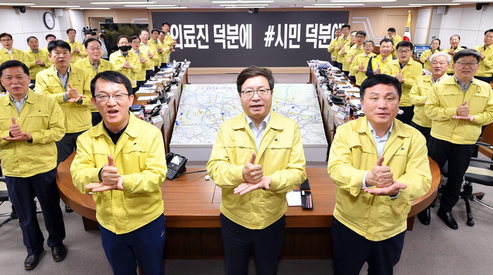 염 시장은 “의료인, 경찰, 소방관, 방역 활동을 지원해주시는 사회적기업, 천마스크를 만들어주신 자원봉사자 등 각자의 자리에서 코로나19 극복을 위해 최선을 다해주신 모든 분께 감사드린다”며 “빈틈없는 협력, 지역사회와 공조로 코로나19 사태를 지혜롭게 극복할 것”이라고 말했다.