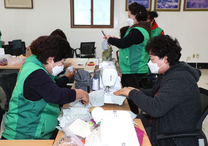 들은 읍면동을 통해 마스크 제작 재료를 배부 받아 직접 마스크를 만들어