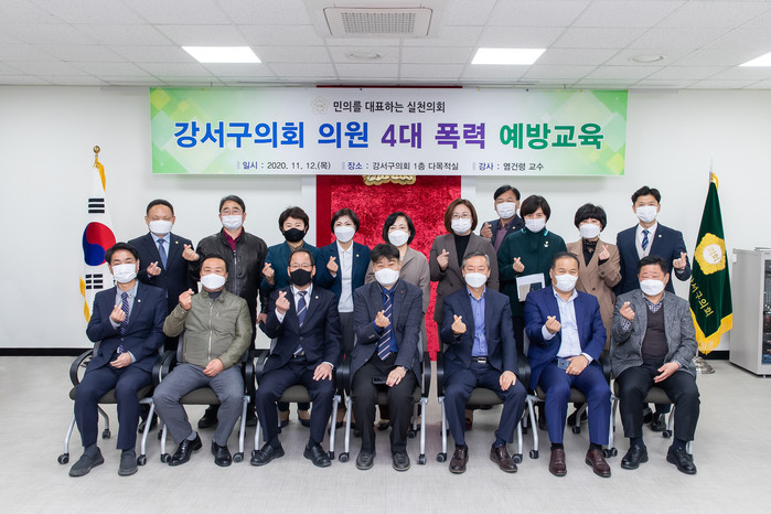 [시민일보 = 홍덕표 기자] 서울 강서구의회(의장 이의걸)가 지난 12일 구의회 1층 다목적실에서 구의회 의원과 사무국 직원들을 대상으로 '4대 폭력 예방교육'을 실시했다.