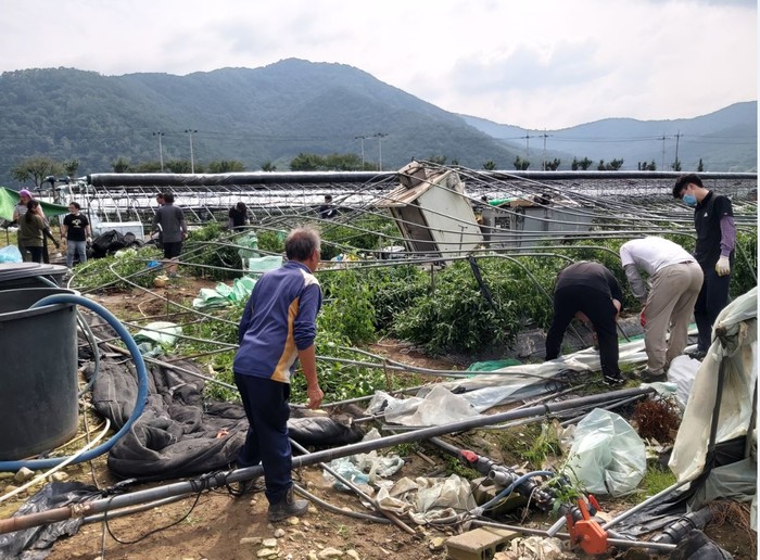 밀양시는 지역내 중견기업 (주)한국화이바 직원 20명이 지난 11일 연이은 태풍으로 피해를 입은 시설하우스 농가를 방문해 무너진 시설하우스 복구 일손돕기에 나섰다고 밝혔다.