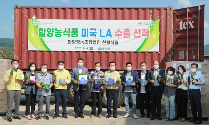 이날 서춘수 함양군수는 “코로나19 확산으로 관내 농식품 업체가 어려움을 겪는 가운데 미국 수출을 이루어 낸 천령식품 대표님과 직원여러분의 노고에 감사드린다.”며 더 넓은 세계시장 개척을 위해 군 차원에서도 적극 나설 것이라며, 수출신장의 밀알이 되어 달라고.”말했다.