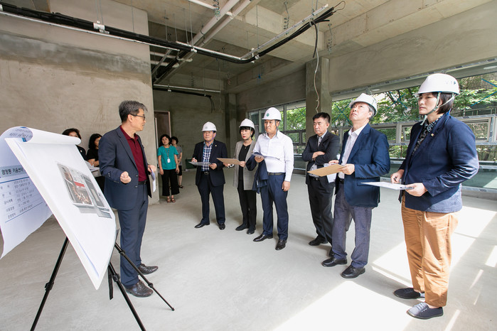 최근 임시회 기간 중 염창동에 위치한 우리동네 키움센터를 방문한 서울 강서구의회 미래복지위원회 의원들이 관계자로부터 공사진행 상황을 듣고 있다. (사진제공=강서구의회)