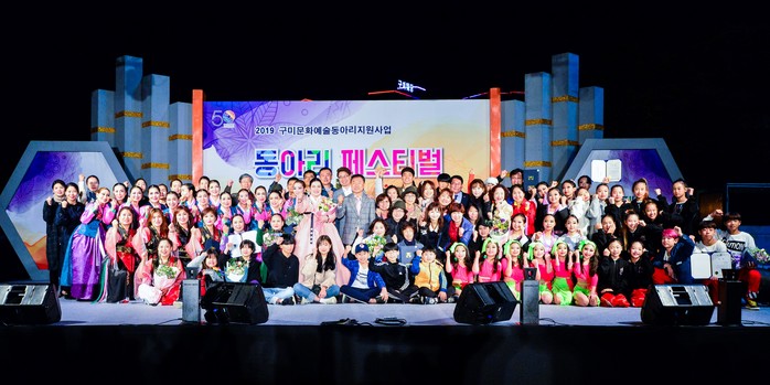 | ▲ 2019 구미문화예술동아리지원사업 '동아리 페스티벌' 후 기념촬영을 하고 있는 참가자들. (사진제공=구미시청) |