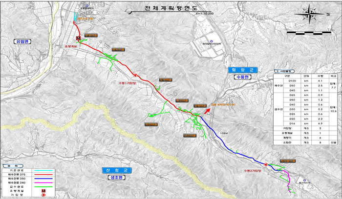 특히, 사업대상 일부 지역은 마을상수도 수질기준 일부 초과항목이 발생되어 주민들의 식수이용에 다소 불편함이 있었던 지역으로 군은 주민들의 불편을 해소하기 위해 수동면 죽산리 일원 지방상수도 공급을 군수 공약사업으로 선정하여 취임 이후 지속적인 노력을 기울여왔다.