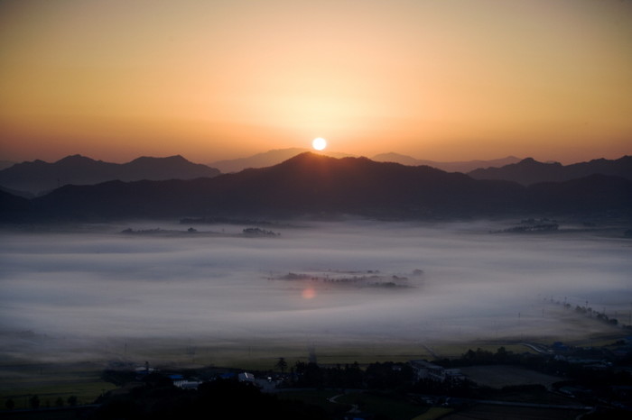 | ▲ 안개낀 만대산의 일출. (사진제공=해남군청) |