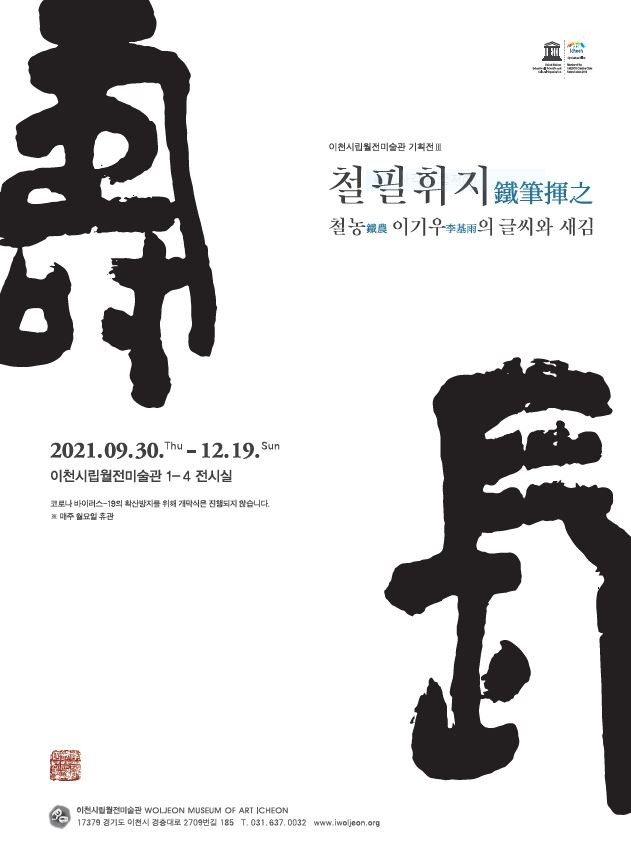 [시민일보 = 민장홍 기자] 경기 이천시립월전미술관이 2021년 가을 기획전으로 '철필휘지鐵筆揮之: 철농 이기우의 글씨와 새김'전을 개최한다.
