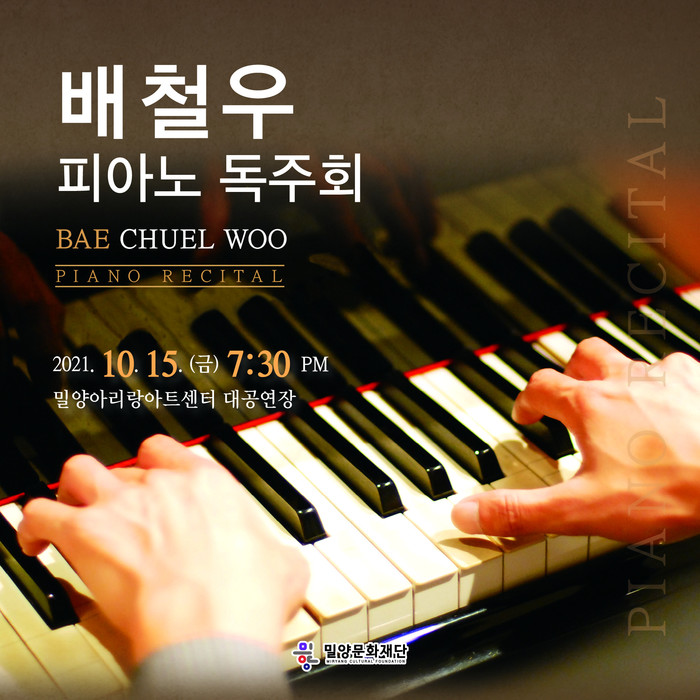 밀양문화재단(이사장 박일호, 이하 재단)은 오는 10월 15일 오후 7시 30분 밀양아리랑아트센터 대공연장에서 ‘배철우 피아노 리사이틀’ 공연을 진행한다.