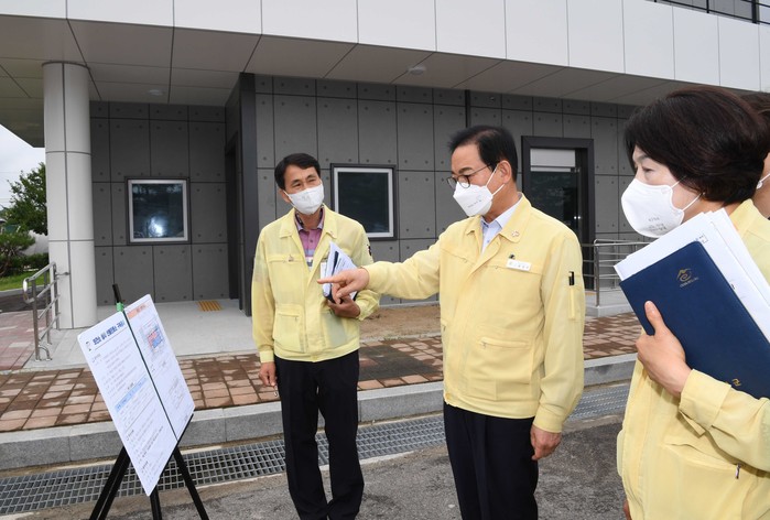 한 군수는 이날 공사현장을 방문한 데 이어 무더위 속에도 꿋꿋하게 코로나19 대응에 땀 흘리고 있는 의료진의 어려움을 살피기 위해 선별진료소와 예방접종센터를 찾아 더위를 피할 수 있는 냉방 조치 상태를 점검하고 관계자들과 이야기를 나눴다.