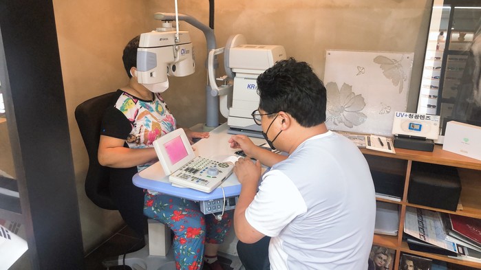 굿아이안경콘택트는 이번 무상 지원에 앞서 지역 장애인을 대상으로 건강검진(안검사)를 실시했다.