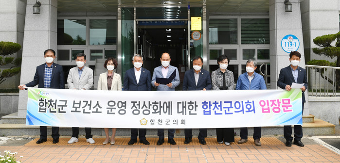 군의회는 지난 1일 있었던 전국공무원노조합천군지부의 성명과 언론보도로 확대 양상으로 치닫는 보건소 문제가 이대로 심화될 경우 코로나19 대응에 행정력을 집중해야 할 군 보건행정에 자칫 지연과 공백이 발생할 우려를 제기하고, 합천군은 문제가 더 확대되기 전에 조속한 갈등 해소 및 운영정상화를 위한 군의 해결방안 제시할 것과 이번 일을 반면교사 삼아 재발방지대책을 마련할 것을 강력히 촉구했다.