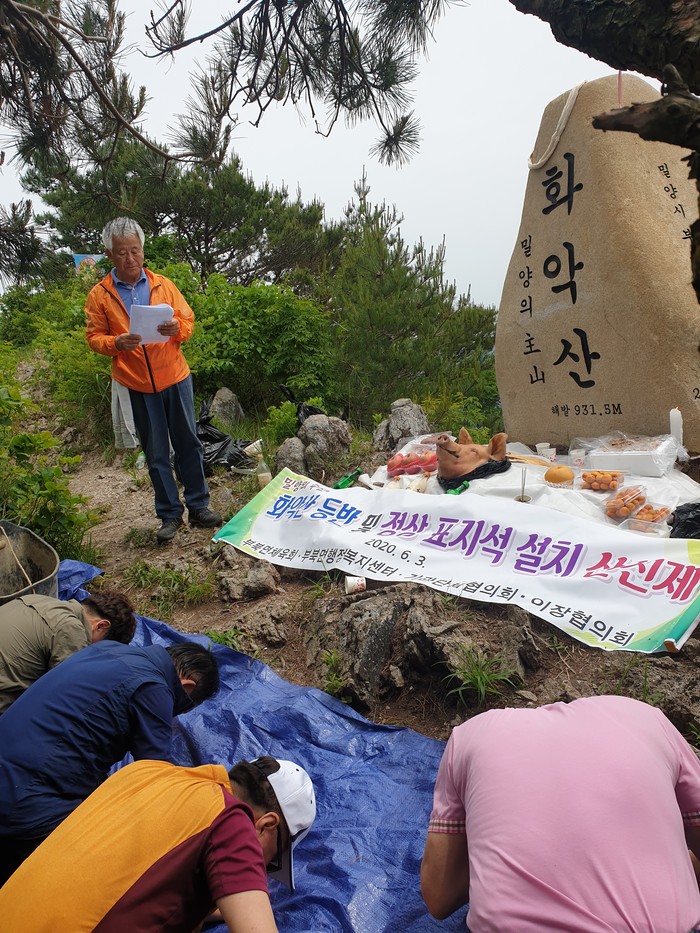 밀양시 부북면체육회는 지난 3일 밀양의 주산(主山)인 화악산 정상 표지석