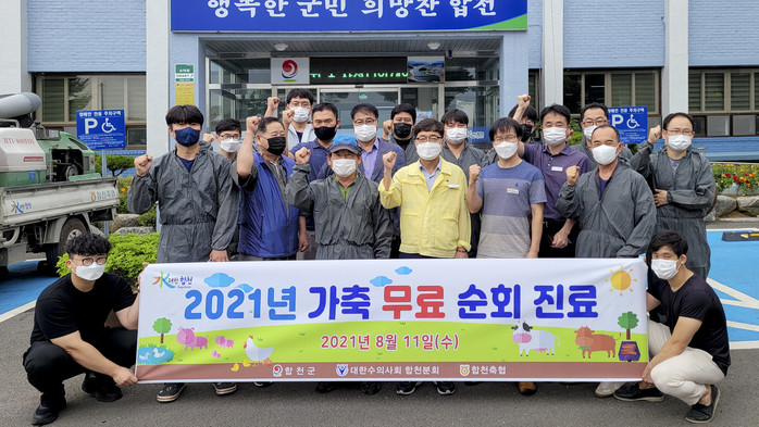 이번 가축 무료 순회진료에는 10여 명이 참여한 가운데 합천군과 군 공수의가 공동으로 진료반을 편성하여 합천읍 소재 한우사육농가(128호 2,832두)를 대상으로 질병예찰, 여름철 사양관리 지도 및 간단한 진료를 실시했다.