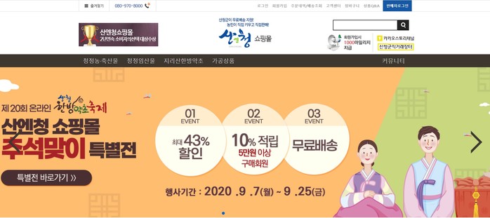 우선 ‘산엔청쇼핑몰’에서는 25일까지 할인행사와 함께 5만원 이상 구매회원에 한해 결제금액의 10%를 적립금으로 되돌려준다.