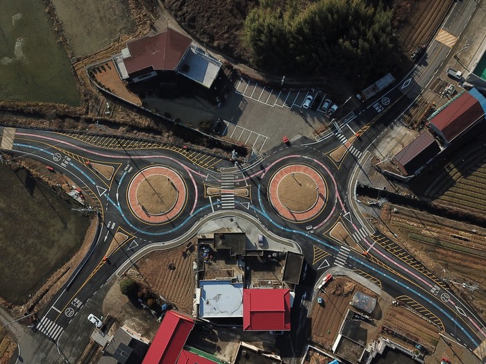 회전교차로는 교차로 중앙에 설치된 교통섬을 중심으로 회전하여 통행하는 방식으로 차량 소통이 원활해지고 교차로 진입을 위해 차량들이 저속 운행을 하여 대형사고가 발생할 확률이 낮은 장점이 있다.