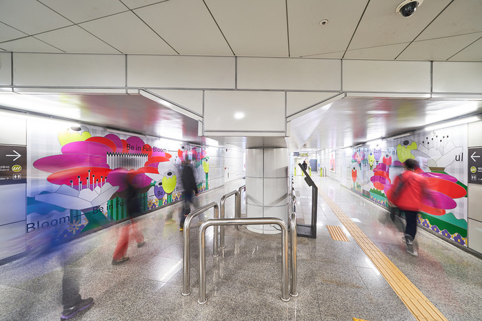 | ▲ '만개:UlBlossom' 주제전이 열리고 있는 신설동역 전시전경. (사진제공=서울시청) |