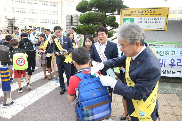 이날 등굣길 교통지도 및 캠페인에는 박종훈 경상남도교육감, 진정무 경남지방경찰청장, 이영재 도로교통공단 울산경남지부 본부장, 송승환 창원교육장, 녹색어머니회와 모범운전자회 회원 등 100여 명이 함께 하였다.
