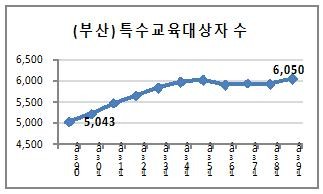 [부산=최성일 기자]10년 전 대비 부산지역 초중고 학생수는 36% 감소하여 전국 최고의 감소율을 보인 반면, 특수교육대상자는 5,043명에서 6,050명으로 1천 명 넘게 증가(20%↑)했다. 그러나 최근 솔빛학교 이전 및 부산대부설특수학교 신설 문제에서 보듯 특수학교 설립에 관한 추진은 님비현상 등의 이유로 지지부진한 실정이다.