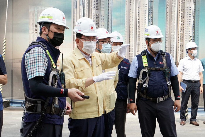 | ▲ 지난 6월23일 유덕열 구청장이 청량리4구역 공사 현장을 점검했다. (사진제공=동대문구청) |