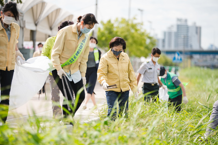 | ▲ 광진구의원 및 새마을회원들이 생활쓰레기를 수거하고 있다.(사진제공=광진구의회) |