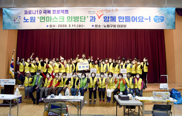 노원구내에는 1회용 마스크 공급부족을 해소하고자 자원봉사자들로 조직된 ‘노원구 면마스크 의병단’의 활약도 빛난다.