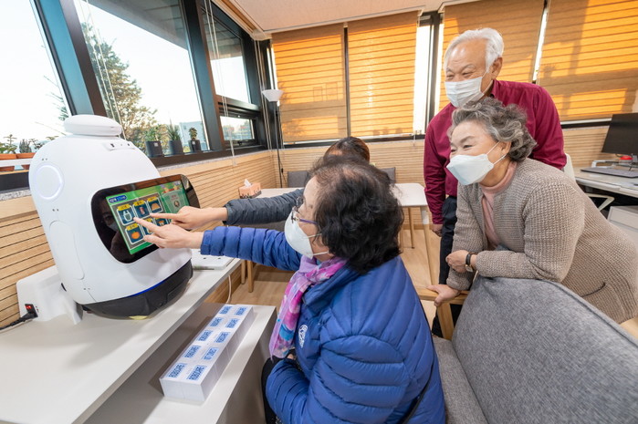 서울 양천구 치매안심센터가 최근 지역내 노인들을 정상군·인지저하군·경증치매군으로 분류하고 이에 따라 프로그램을 구성, 스마트 케어기기 ‘보미’를 통해 1대1 맞춤으로 진행하고 있다. 사진은 지난 10일 센터에서 한 노인이 '보미'로 단어 맞히기 프로그램을 진행하고 있는 모습. (사진제공=양천구청)