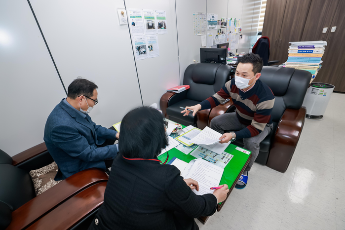 | ▲ 이승일 의원이 임산부 전용주차구역 설치를 위한 조례안 발의를 위해 관계부서 담당자와 회의를 진행하고 있다. (사진제공=강동구의회) |