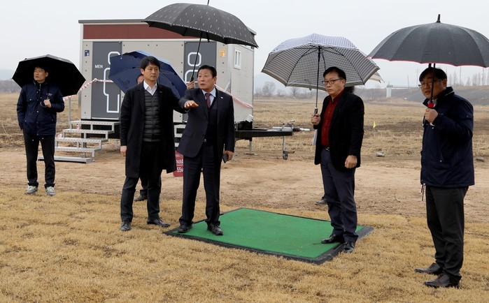 이날 조 군수가 방문한 법수 현장은 총 사업비 3억 4000만 원을 투입, 총 면적 9,990㎡에 18홀이 구성돼 있으며 오는 4월에 개장을 앞두고 있다. 8,765㎡의 천연잔디와 8,000주의 관목을 식재하여 주변 자연환경과 조화를 이루도록 했다.