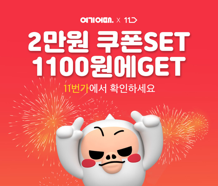 [시민일보 = 고수현 기자] 국내 대표 종합숙박·액티비티 예약서비스 여기어때(대표 최문석)가 8일 오후 3~7시 11번가를 통해 할인쿠폰을 특가로 선보인다.
