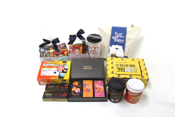 카카오톡 전용 선물세트도 선보이는 데 노란색 상자에 담긴 크런키 선물세트에는 크런키 브랜드 10개 제품이 들어 있으며 피오의 굿즈 3종이 함께 들어 있다. 지마켓에서도 동일 기간 ‘가나 시그니처’ 샘플링 행사를 진행하며 이 기간 일정량의 가나 초콜릿을 구입하면 손거울 등의 사은품을 증정한다.