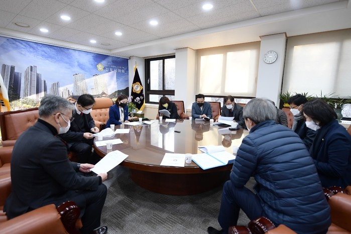 경기 김포시의회가 최근 발생한 통진읍 산란계 농장 조류인플루엔자와 관련한 긴급 보고를 듣고, 확산 차단을 위한 빠른 조치, 현실적인 축산 농가보상 정부건의, 김포시의 추가 지원 검토 등을 주문했다. 사진은 긴급 보고 청취 중인 시의원들의 모습. (사진제공=김포시의회)