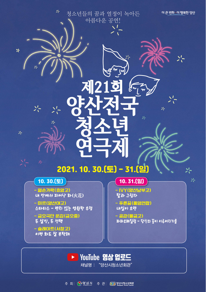 깊어가는 가을빛 하늘과 함께 제21회 양산전국청소년연극제가 10월 30일(토)와 31일(일) 이틀간 개최된다.