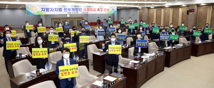 특히, 지난 8일 제1차 본회의에서는 강영우 의원 등 37명이 발의한 ‘지방자치법 전부개정법률(안) 수정의결 건의안’이 채택됐다. 이날 대표 발의한 강 의원은 제안 설명을 통해 “광역시에 국한된 정책지원 전문인력 도입과 인사권 독립이 수원시와 같은 기초지방자치단체에도 보장될 수 있도록 현재 국회에 계류 중인 지방자치법 전부개정법률안을 보완해 지방자치의 실질적인 실현이 이뤄지도록 촉구하고자 한다”고 말했다.