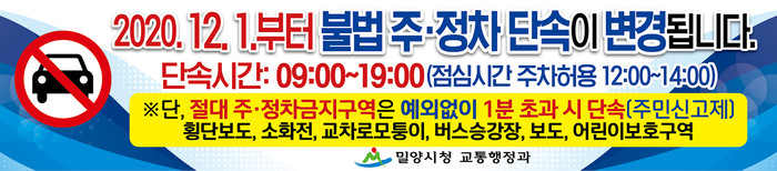 밀양시는 최근 변화된 지역 여건과 교통 환경을 반영해 12월 1일부터 불법 주·정차 단속카메라(CCTV) 운영 사항을 변경한다고 밝혔다.