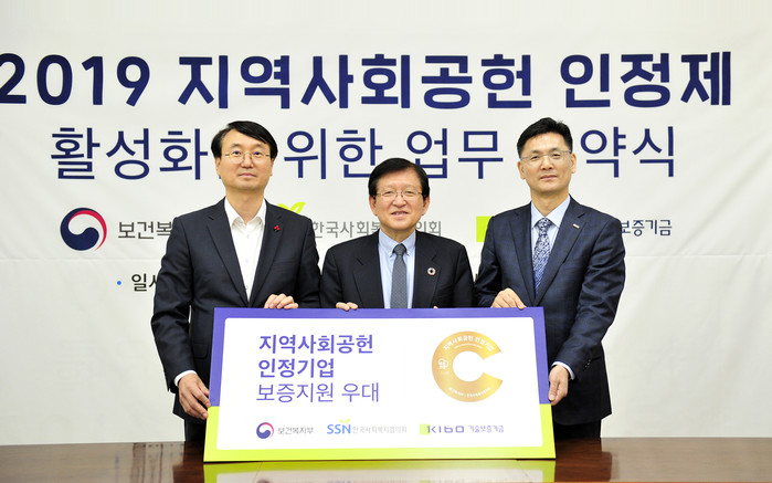 협약에 따라 기보는 지역사회공헌 인정기업에게 ▲보증심사 우대(보증비율·보증료 등) ▲창업교실 및 경영컨설팅 대상자 선정 우대 ▲기보 시설사용료 할인 등의 혜택을 제공하고, 보건복지부와 한국사회복지협회는 관련 사업 홍보 및 우대가 필요한 사항에 대해 적극 협력하기로 했다.