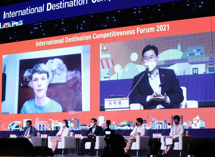 권락용 경기도의원이 최근 고양시 킨텍스에서 열린 '2021 고양데스티네이션 위크'에 전문가 패널로 참석해 지역 관광산업과 마이스 산업 활성화 방안을 논의했다. 이날 권 의원은 관광세 도입에 대한 공론화와 발전 방향을 모색해야 한다고 강조했다. 사진은 권 의원이 관광산업 활성화 방안에 대해 발언하고 있는 모습. (사진제공=경기도의회)