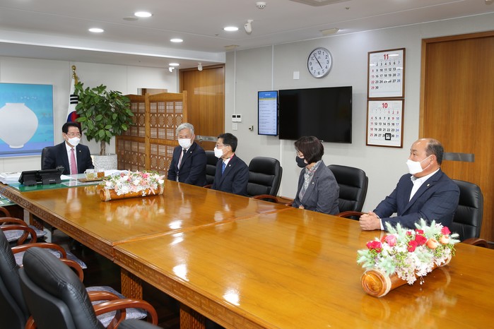 [해남=정찬남 기자] 김병덕 전남 해남군의회 의장을 비롯한 각 상임위원회 위원장들이 지난 10월29일 전남도청을 방문해 김영록 도지사 및 실국장들과 지역 현안사업과 관련한 면담을 했다.