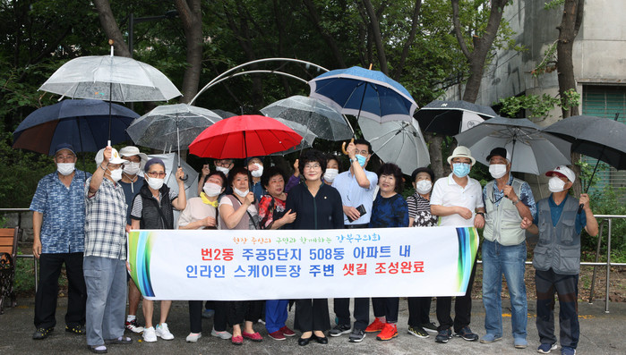 [시민일보 = 홍덕표 기자] 서울 강북구의회(의장 이용균) 유인애 의원(번1·2동, 수유2·3동)이 최근 번2동 주공5단지 508동 아파트 내 '인라인 스케이트장 주변 샛길 환경 조성' 완료 현장을 방문해 의정활동을 펼쳤다.
